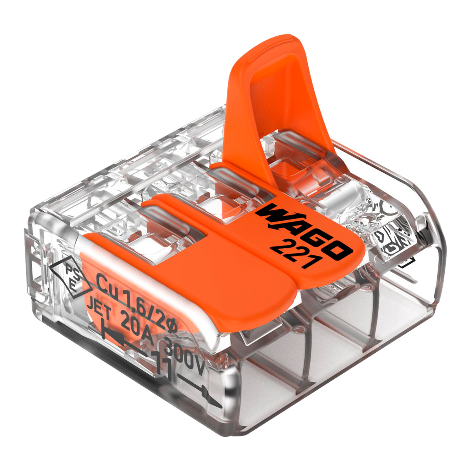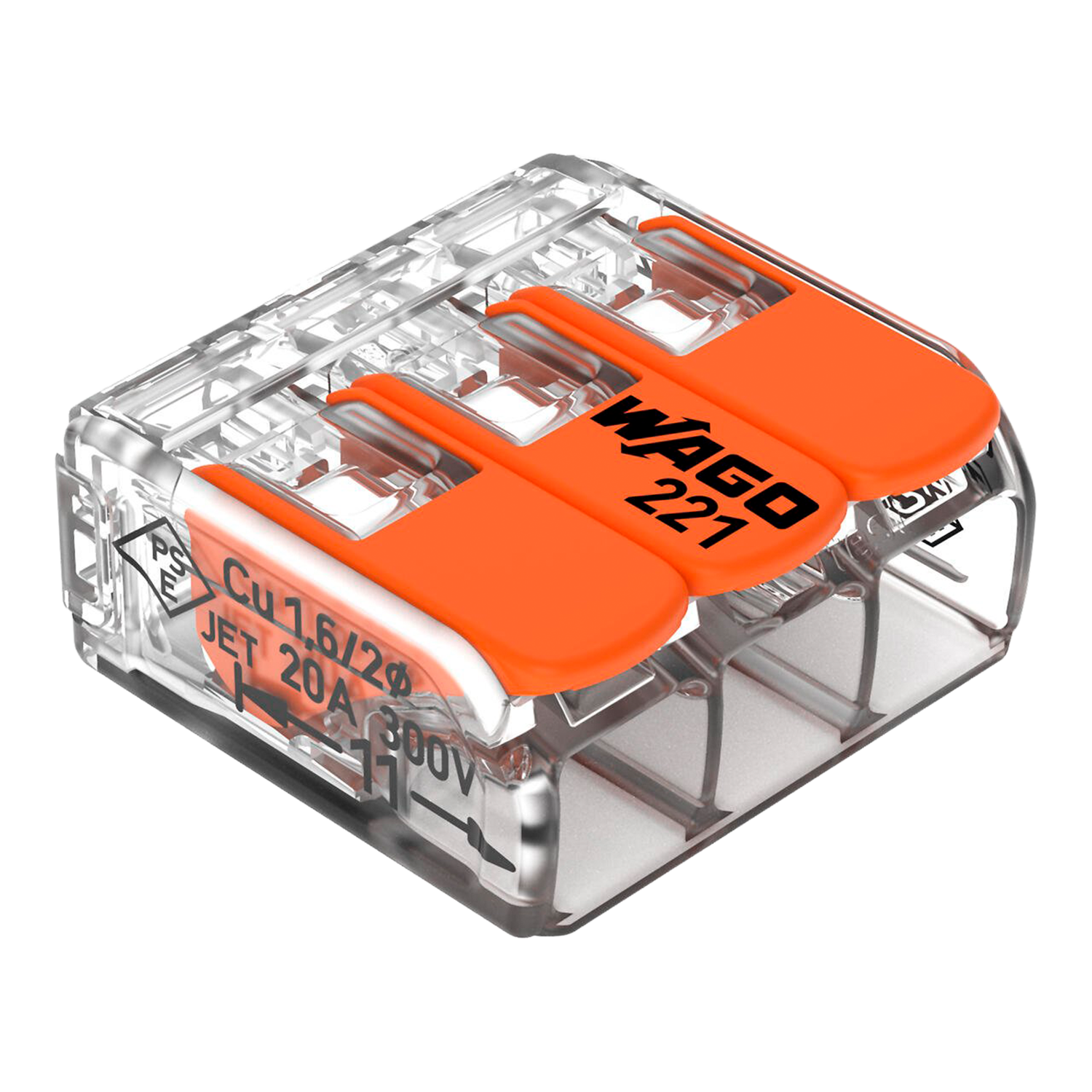 El WAGO 221-413 es un conector de empalme compacto de la serie 221, diseñado para realizar uniones eléctricas rápidas, seguras y sin herramientas. Su sistema de palancas con tecnología CAGE CLAMP® permite abrir el punto de conexión, insertar el conductor y cerrarlo firmemente, garantizando una sujeción estable incluso en aplicaciones exigentes. Está fabricado para trabajar con tres conductores y acepta cables rígidos, semirrígidos o flexibles en un rango de 0.14 a 4 mm² (AWG 24–12), lo que lo convierte en un componente altamente versátil para instalaciones residenciales, comerciales o industriales ligeras. Su carcasa transparente permite verificar visualmente la correcta inserción del cable, y los puertos de prueba facilitan la medición o inspección sin desmontar la conexión. Ofrece una capacidad nominal de 32 A y 450 V, adecuada para circuitos eléctricos comunes y equipos de consumo moderado. Además, su diseño compacto ahorra espacio respecto a generaciones anteriores y favorece una instalación más limpia y organizada. En resumen, el 221-413 proporciona una conexión confiable y reutilizable, ideal para instalaciones de iluminación, tableros eléctricos, mantenimiento, modificaciones rápidas y cualquier aplicación donde se requiera unir varios cables de forma práctica y segura.